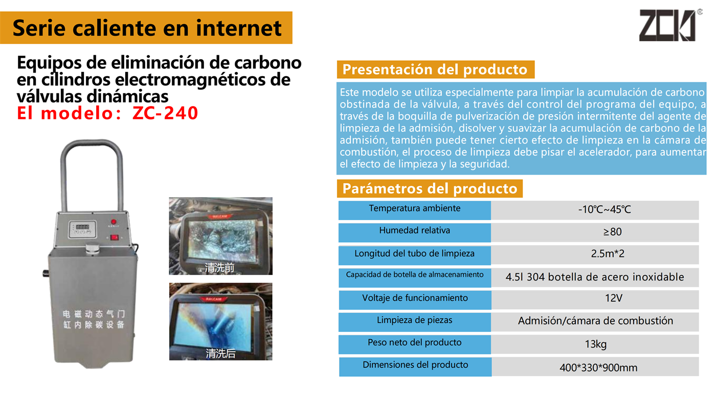 Inicio > Centro de productos > Serie caliente en internet > ZC-240 Equipos de eliminación de carbono en cilindros electromagnéticos de válvulas dinámicas